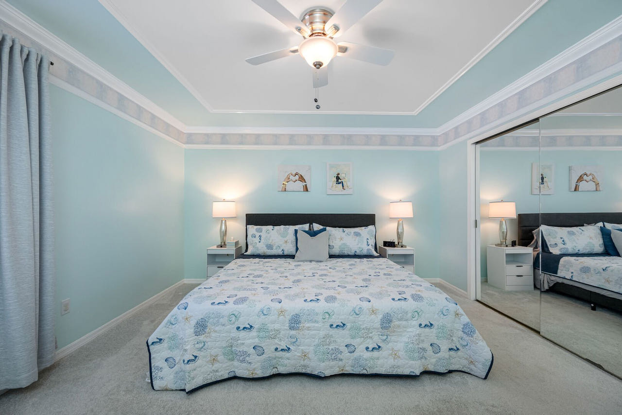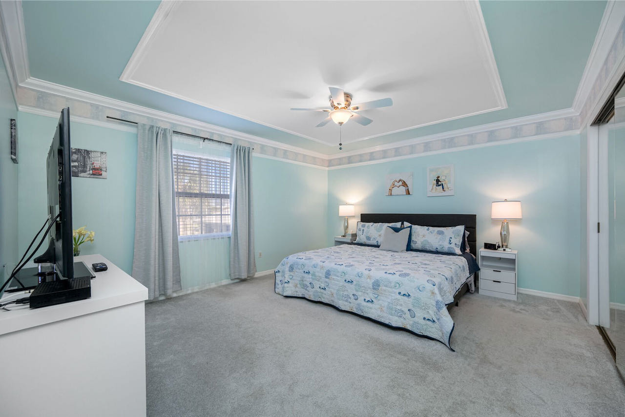 • master bedroom with KING size bed, closets and flat screen cable TV
